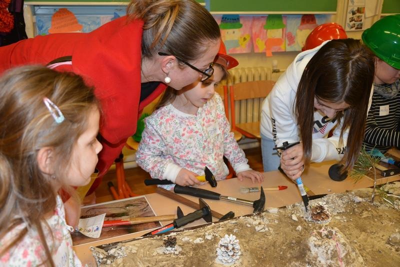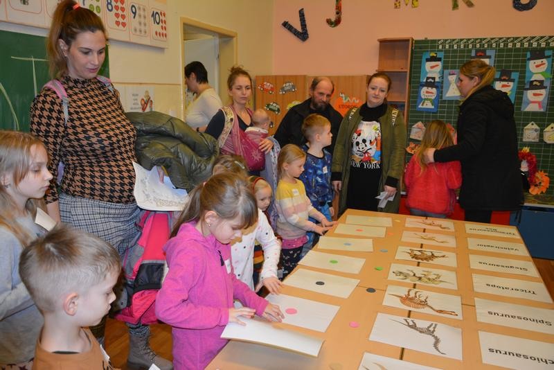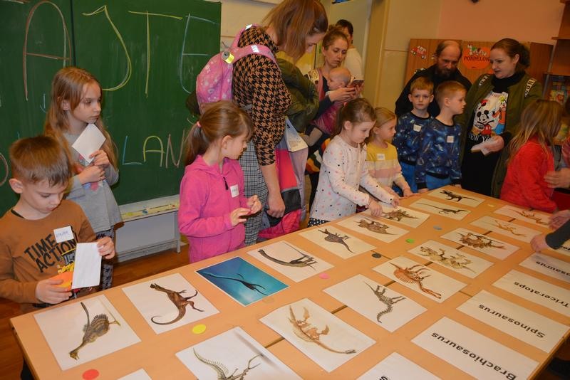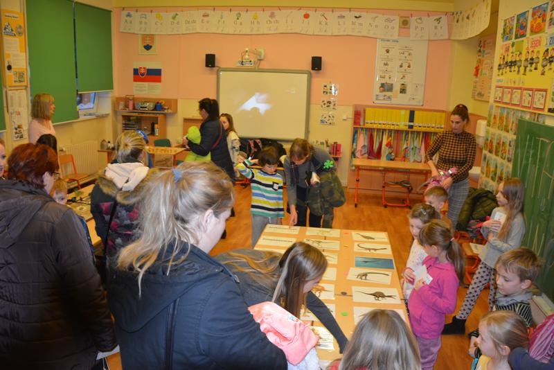 Dňa 13.2.2020 ožila Základná škola Andreja Kmeťa v Leviciach dinosaurami. A prečo práve dinosaurami? Žiaci z 1.D triedy pre intelektovo nadané deti sa v rámci predmetu obohatenie venovali dinosaurom. Svoje vedomosti a získané poznatky uplatnili vo svojich projektoch. Vypracovali krásne a zaujímavé projekty, ktoré odprezentovali pred svojimi rodičmi, spolužiakmi a vedením školy 6.2.2020. Na túto príležitosť si sami zhotovili krásne tričká ozdobené dinosaurami. Prezentáciu svojich projektov zvládli na výbornú. Získané vedomosti zhrnuli do krátkeho vystúpenia, ktoré si pripravili pre svojich kamarátov z materských škôl. Veselú atmosféru navodila aj pesnička od M. Jaroša: Cesta do praveku. Detičky z materských škôl si mohli otestovať svoje vedomosti a zručnosti na dinoworkshopoch. Cvičili, kreslili, riešili rébusy a hlavolamy. Veľký úspech malo stanovište, kde si každý vysekal zo sadry vlastného dinosaura. Po úspešnom zvládnutí všetkých úloh sa mohli deti zabaviť na tabletoch, občerstviť v dinobufete a odniesť si diplom „malý paleontológ – paleontologička“. Ďakujeme všetkým pani učiteľkám z prvého stupňa za prípravu peknej aktivity. Dúfame, že sa naši hostia u nás dobre cítili a všetci spoločne sme na našej škole prežili veľmi príjemné a zábavné popoludnie.